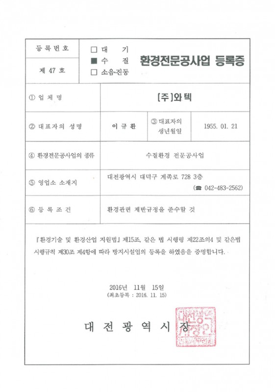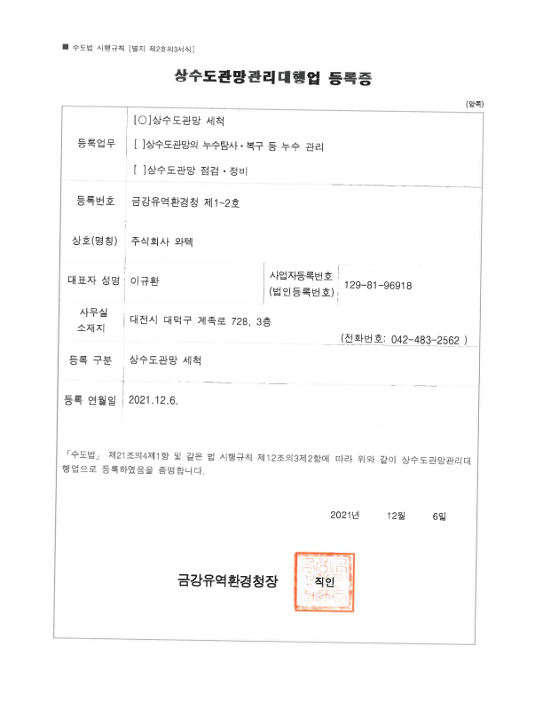상수도관망관리대행업 등록증 (세척)