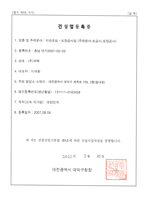 토공사업 등록증