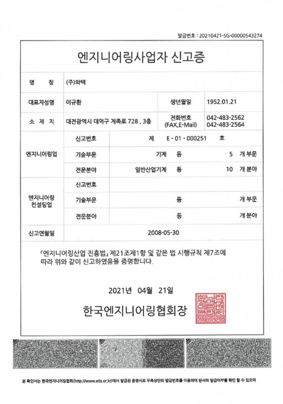 엔지니어링사업자 신고증