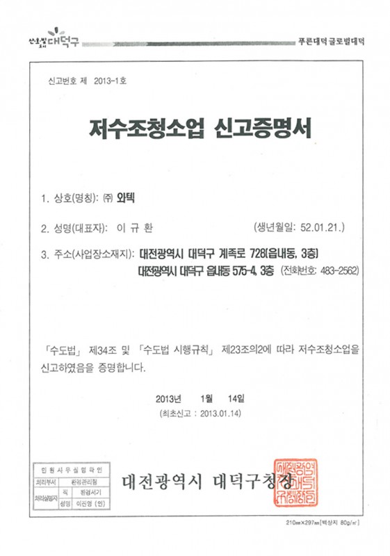 저수조청소업 신고증명서