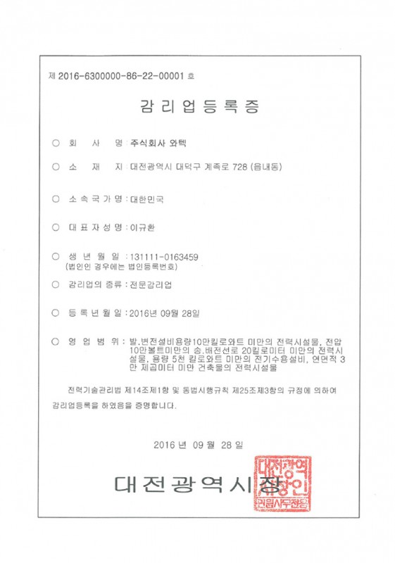 전기 감리업 등록증