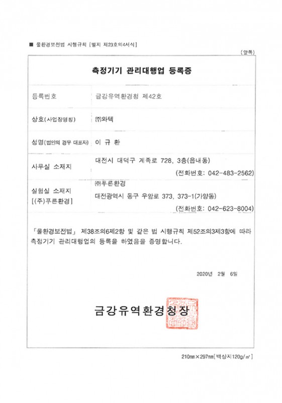 측정기기 관리대행업 등록증