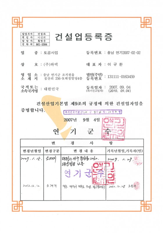건설기술용역업 등록증