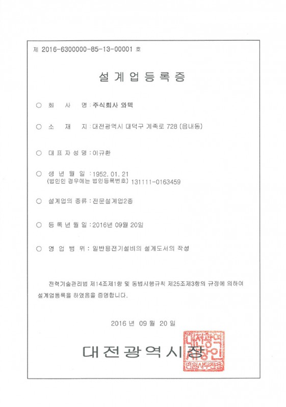 전기 설계업 등록증