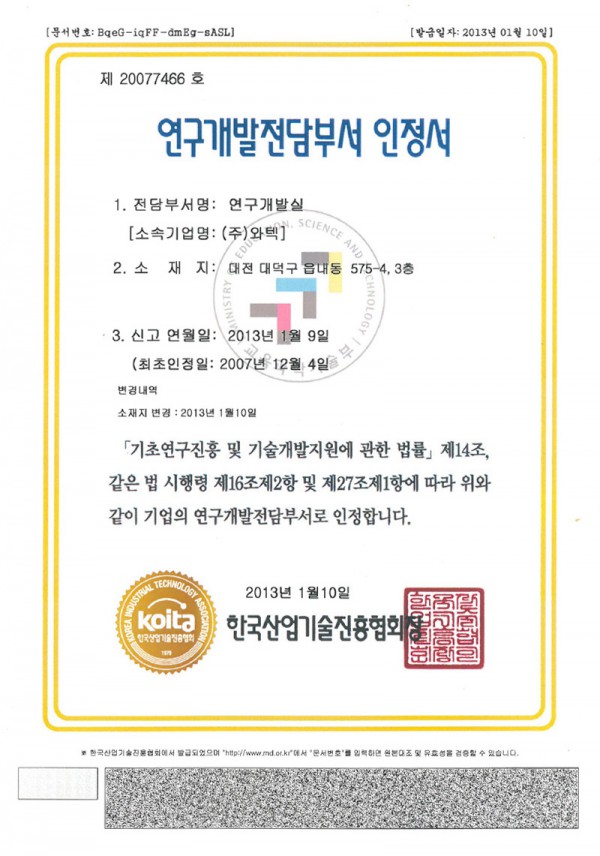 연구개발전담부서 인정서
